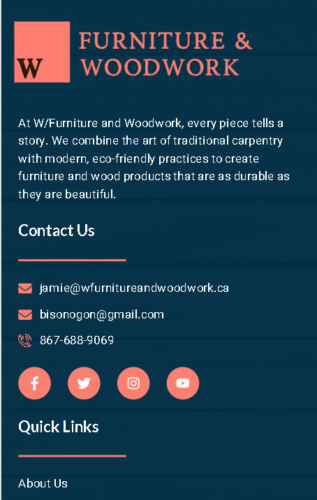With the structure, content, and branding elements finalized, the project moved into the design and development stage. The UI design process focused on creating a visually appealing website that reflects the craftsmanship and professionalism of W/Furniture and Woodwork.